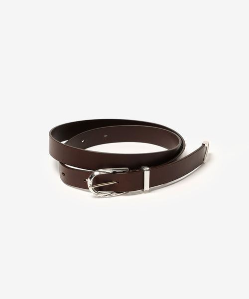 ウエスタンスタイルをベースにしたシンプルで洗練されたフォルム。オリジナルのバックルと剣先金具がさりげないアクセントとなり、ミニマルながらも存在感のあるデザインに仕上げています。