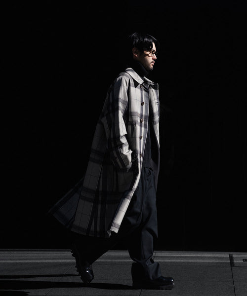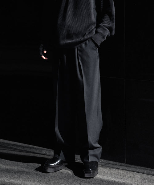 50年代フランス軍の名作のパターンにならい、股上とわたり、ヒップまわりのボリュームをやや大きめにとり、すそにかけてゆるやかにテーパードする1タックトラウザーズ。ほどよいボリューム感がありつつ、フルレングスで着用できるスラックスをイメージしています。ディテールには英国の軍士官が着用していたトラウザーズを踏襲し、太く⻑いベルトループやループ付きのバックポケットを採用。前立てには Lampo社のクラシックなスリムファスナーを採用しました。ブランドロゴ入りのオリジナルマーベルト仕様です。