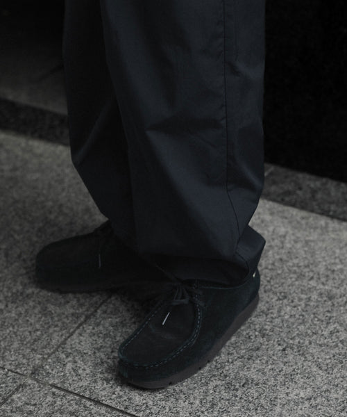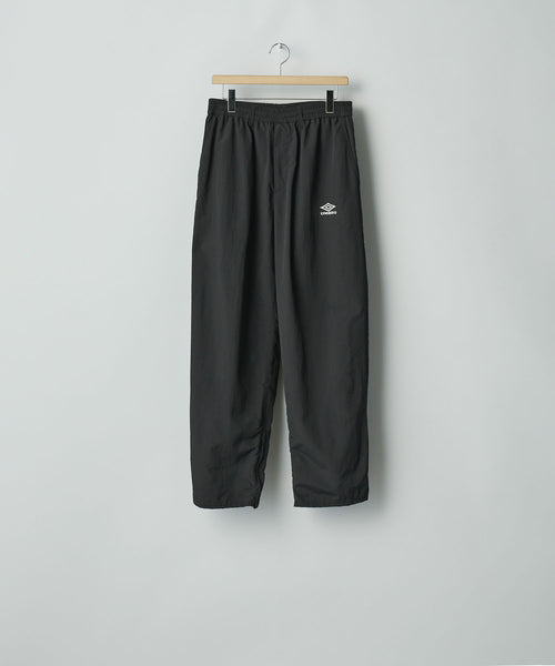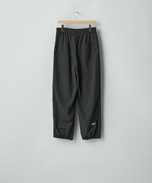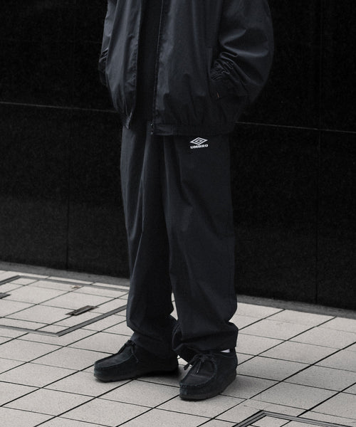 控えめな光沢とコットンのナチュラルな質感が特徴のナイロンコットンダンプ地を使用したトラックパンツ。染色性の高いナイロンならではの発色の良さもポイント。 撥水加工も施されている。