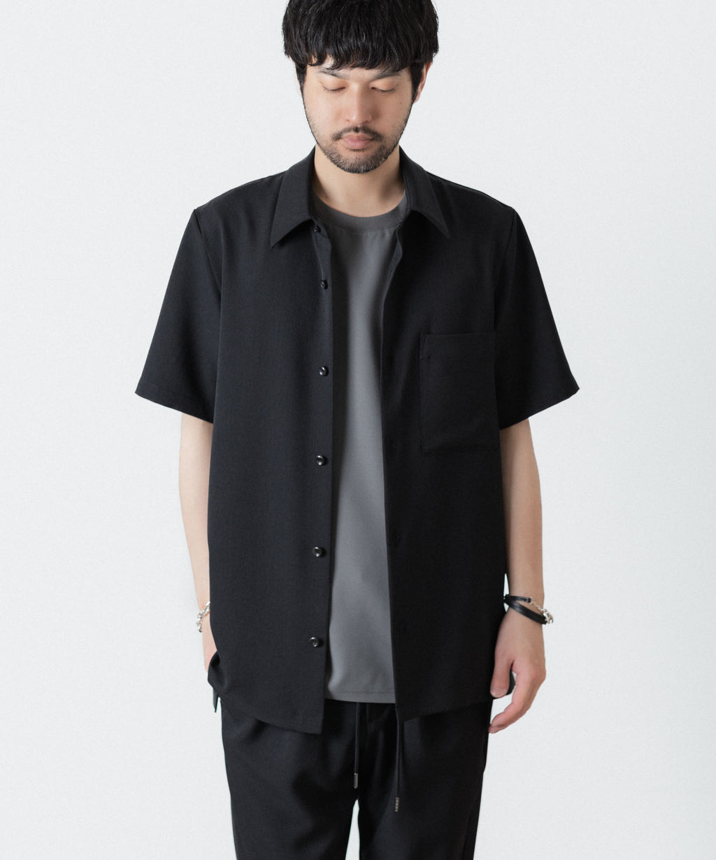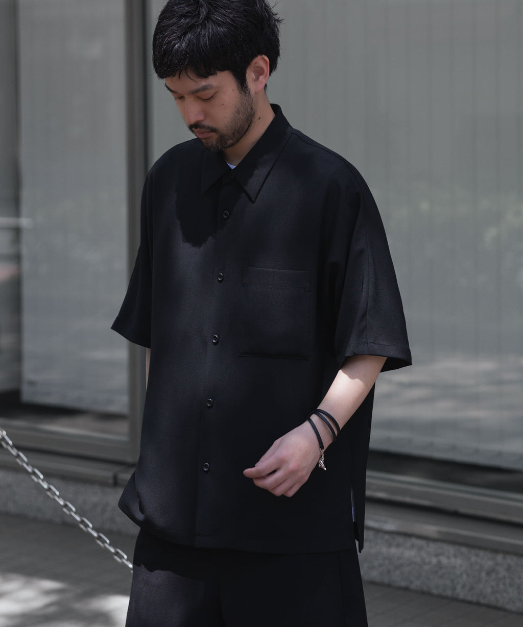 【 ATTACHMENT 】CU/RY FIBRIL TAFFETA PATCH POCKET L/S SHIRT - BLACK