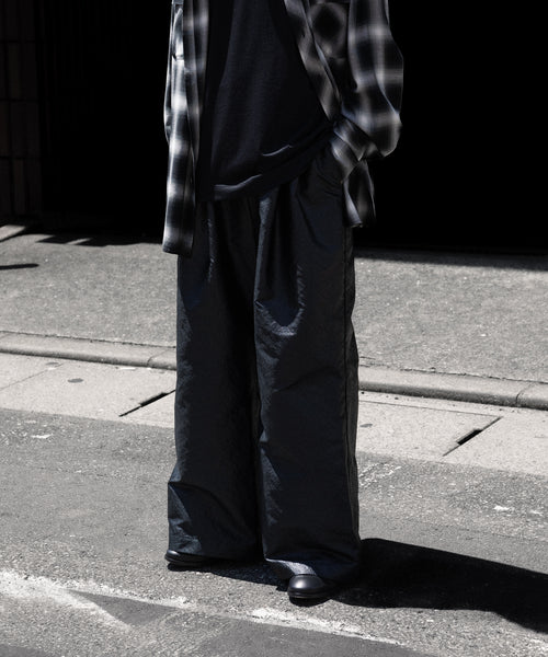 ANTHEM A-アンセムエーのLEATHER LIKE 2TUCK WIDE PANTSのBLACK