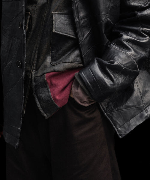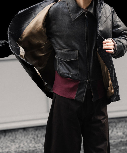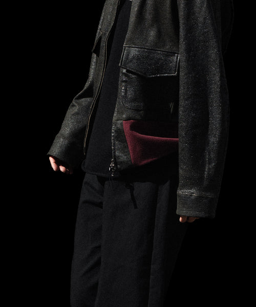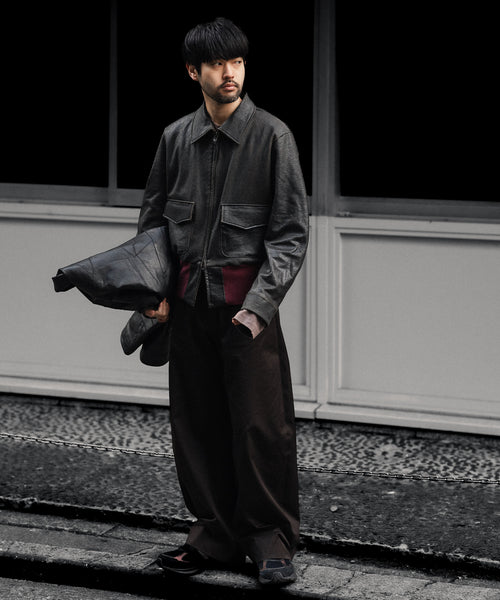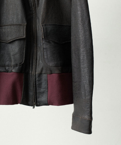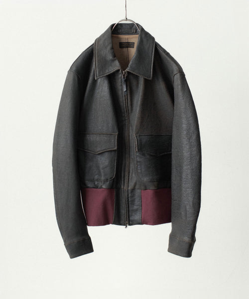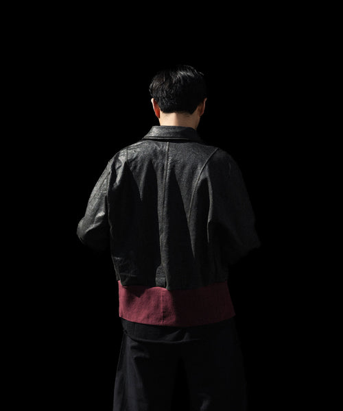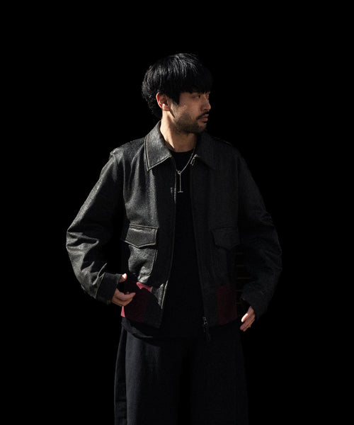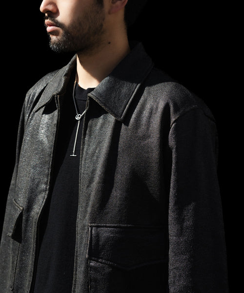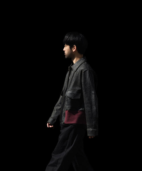 ブランドの代表的な加工手法であるレザー調のクラック加工を施したショートブルゾンです。