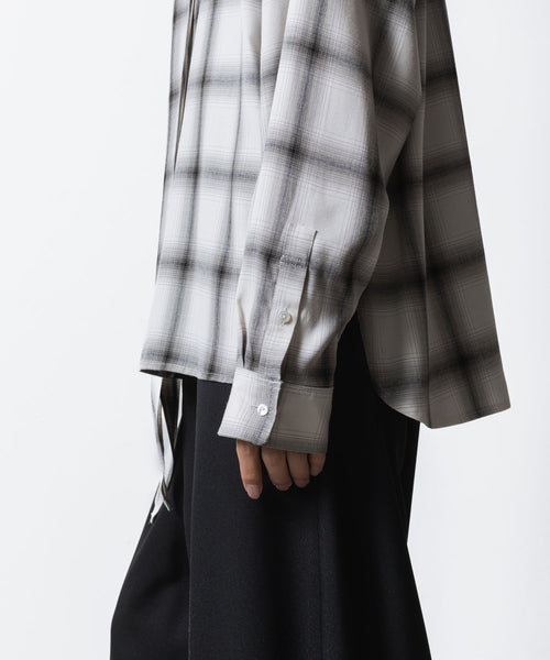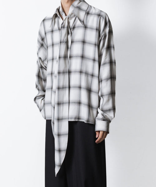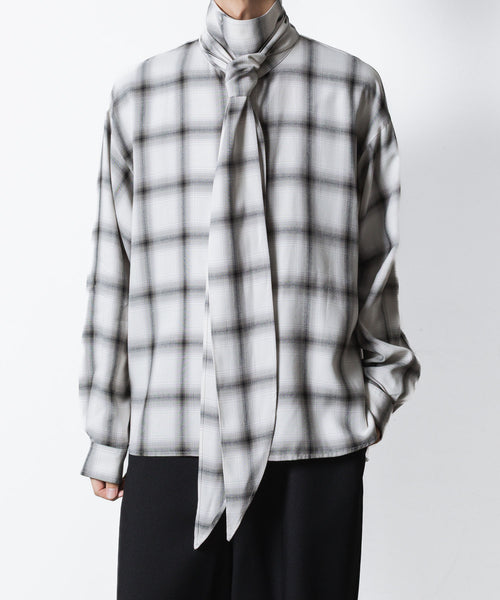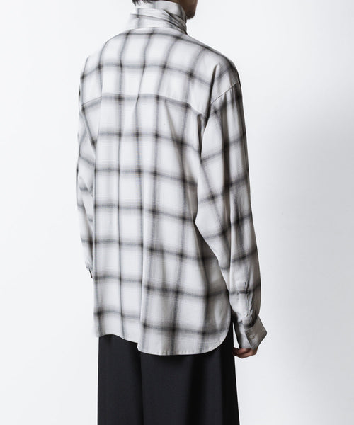 ato-アトウのOMBRE-CHECK SHORT SCARF SHIRTのWHITE