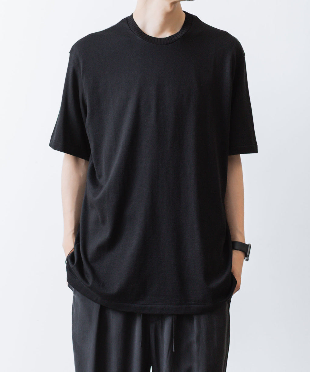 【 ATTACHMENT 】COTTON DOUBLE FACE SLIM FIT HIGHNECK L/S TEE - BLACK