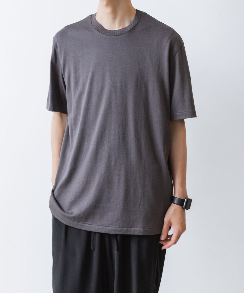 【 ATTACHMENT 】COTTON DOUBLE FACE SLIM FIT S/S TEE - D.GRAY