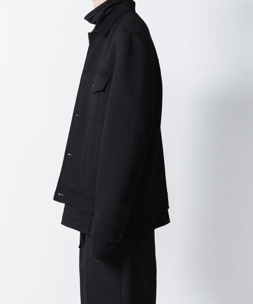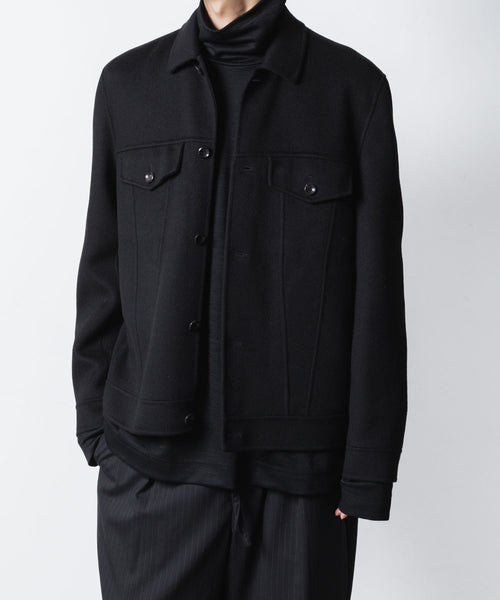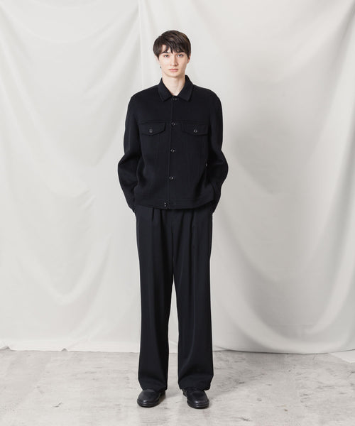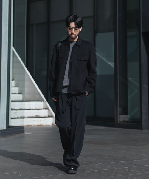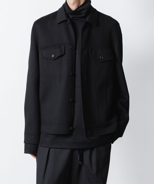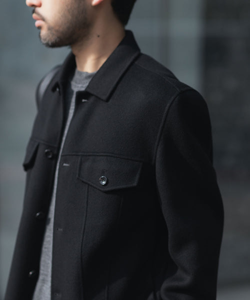 ワークを起源とするトラッカージャケットを上質な素材でつくることで、ラグジュアリーで都会的な雰囲気に仕上げた本作。