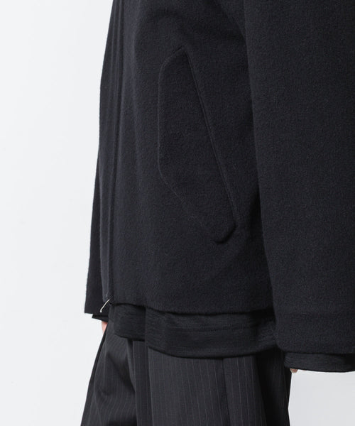 ラグジュアリーなシャギーウールを使用したながらも、軽量で保温性に優れたミニマルなショート丈のフーデットブルゾン。