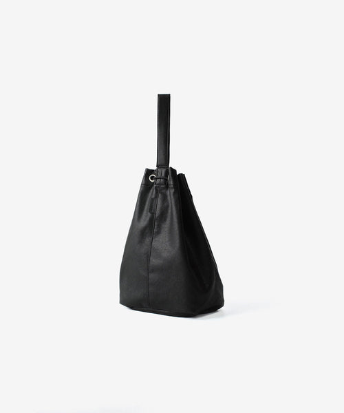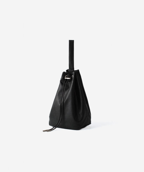 ミニマルなフォルムと巾着型の開口部を組み合わせた新型バケットバッグ。