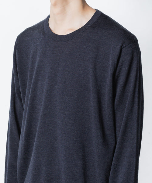 【 ATTACHMENT × JOHN SMEDLEY 】× JOHN SMEDLEY MERINO EXTRAFINE WELTED CREW NECK L/S - D.NAVY