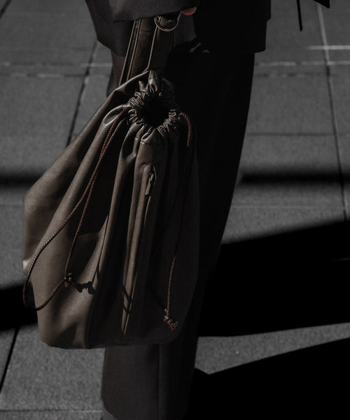 ミニマルなフォルムと巾着型の開口部を組み合わせた新型ワンショルダーバッグ。