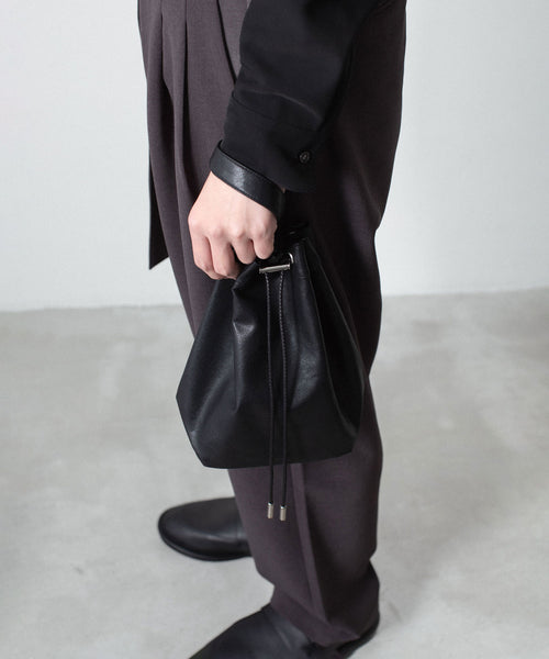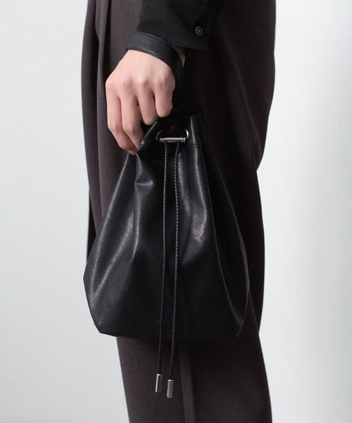 ミニマルなフォルムと巾着型の開口部を組み合わせた新型バケットバッグ。