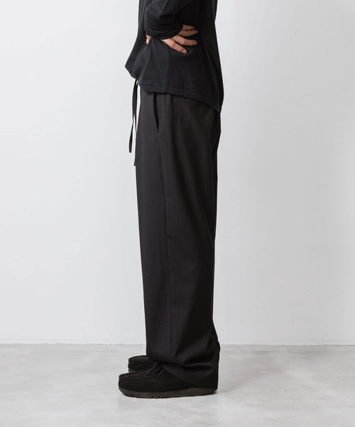 カジュアルだけでなく、ビジネスカジュアル、出張、トラベル、パーティーなど様々なシーンで着用いただけるユーティリティーなイージーワイドトラウザーズに仕上げています。