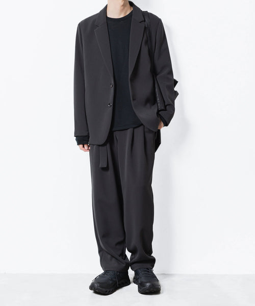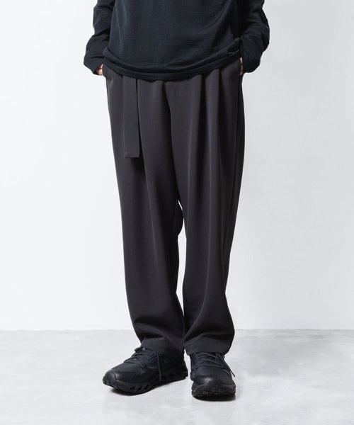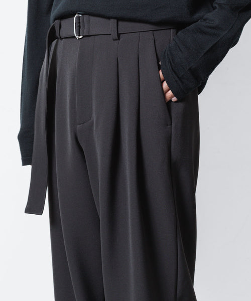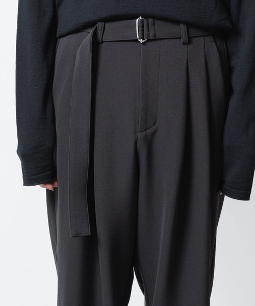 【 ATTACHMENT / EXCLUSIVE ITEM 】PE STRETCH DOUBLE CLOTH BELTED WIDE TAPERD TROUSERS - D.GRAY