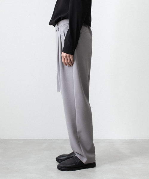 【 ATTACHMENT 】PE STRETCH DOUBLE CLOTH BELTED WIDE TAPERED TROUSERS - L.GRAY