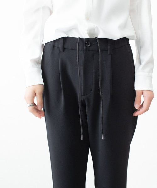 【 ATTACHMENT 】PE STRETCH DOUBLE CLOTH REGULAR FIT EASY TROUSERS - BLACK