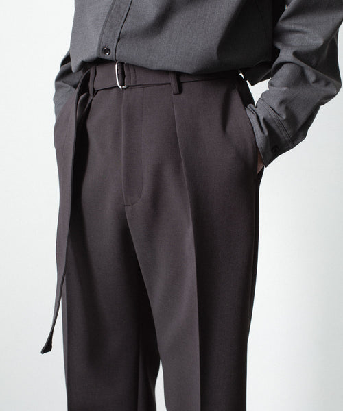 【 ATTACHMENT 】PE STRETCH DOUBLE CLOTH BELTED STRAIGHT TROUSERS - D.BROWN