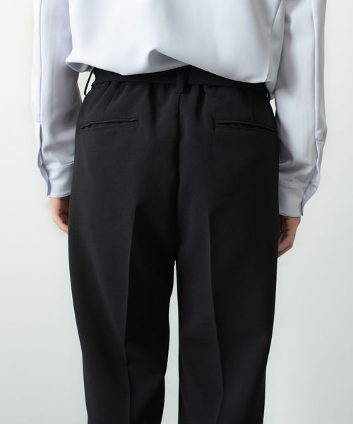 【 ATTACHMENT 】PE STRETCH DOUBLE CLOTH BELTED STRAIGHT TROUSERS - BLACK