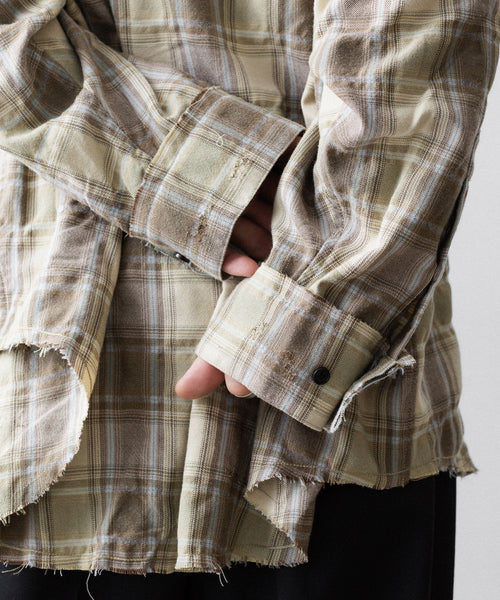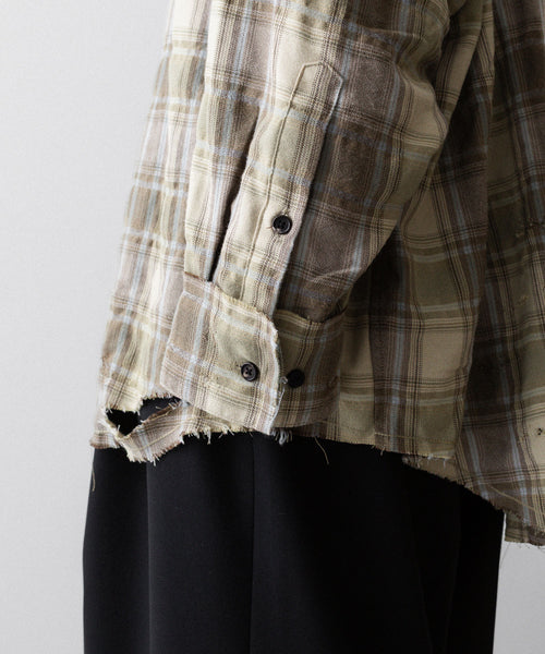 CODA -コーダのYELLOW BROWN CHECKED WASHED THRASHED STRUCTURED SHIRTのYELLOW BROWN CHECK