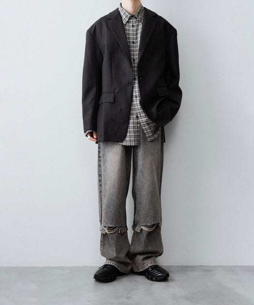 CODA -コーダのGREY CHECK VISCOSE RAW EDGES SHIFT SHIRTのGREY CHECK