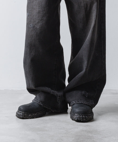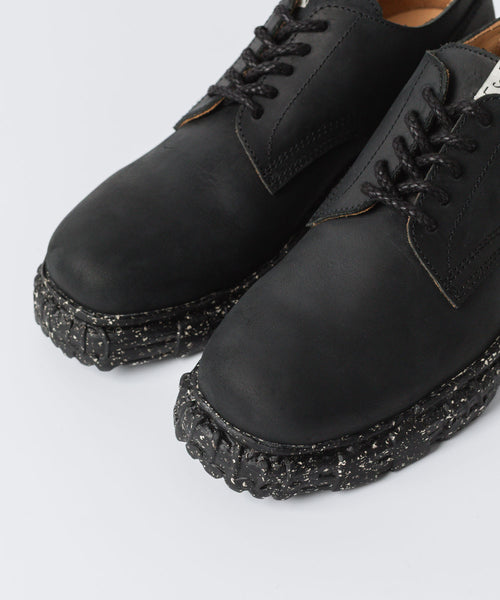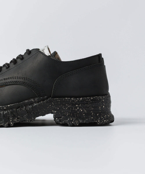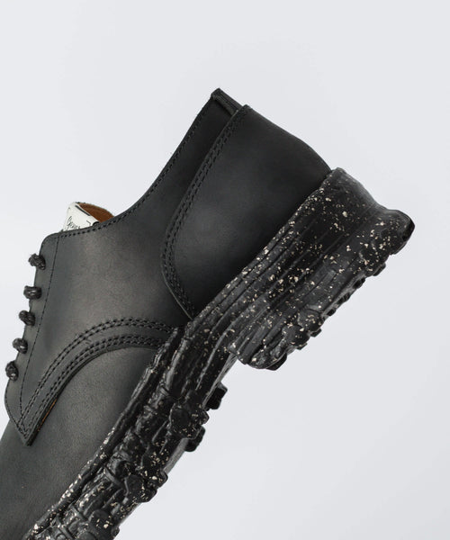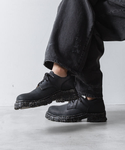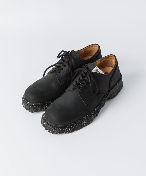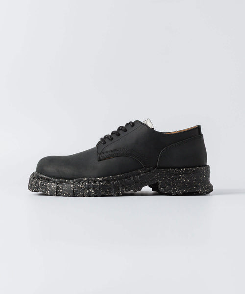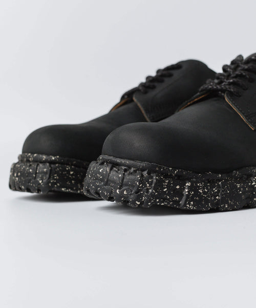 デザイナーが古着屋で見つけたコンバットブーツをベースに製作されたレザーシューズ。