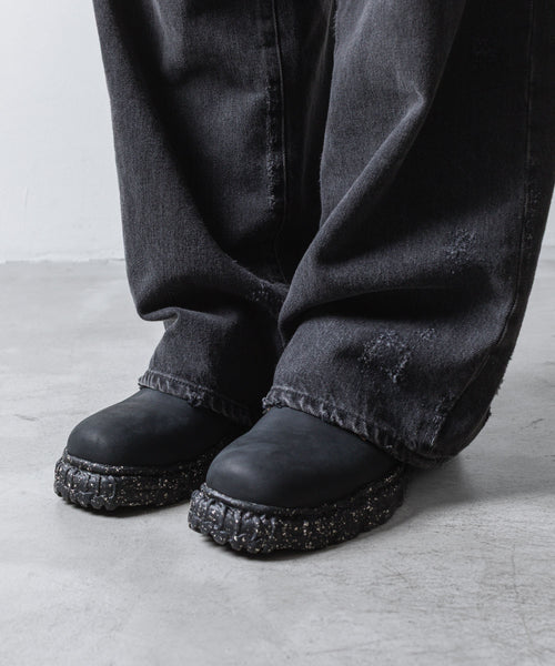 リサイクルラバーを採用したソールは、すり減りや経年劣化で朽ちたゴム、履き古した風合いが忠実に再現されています。
