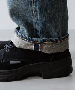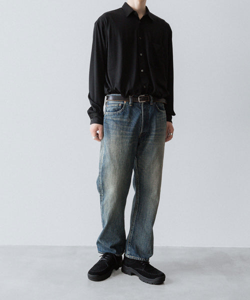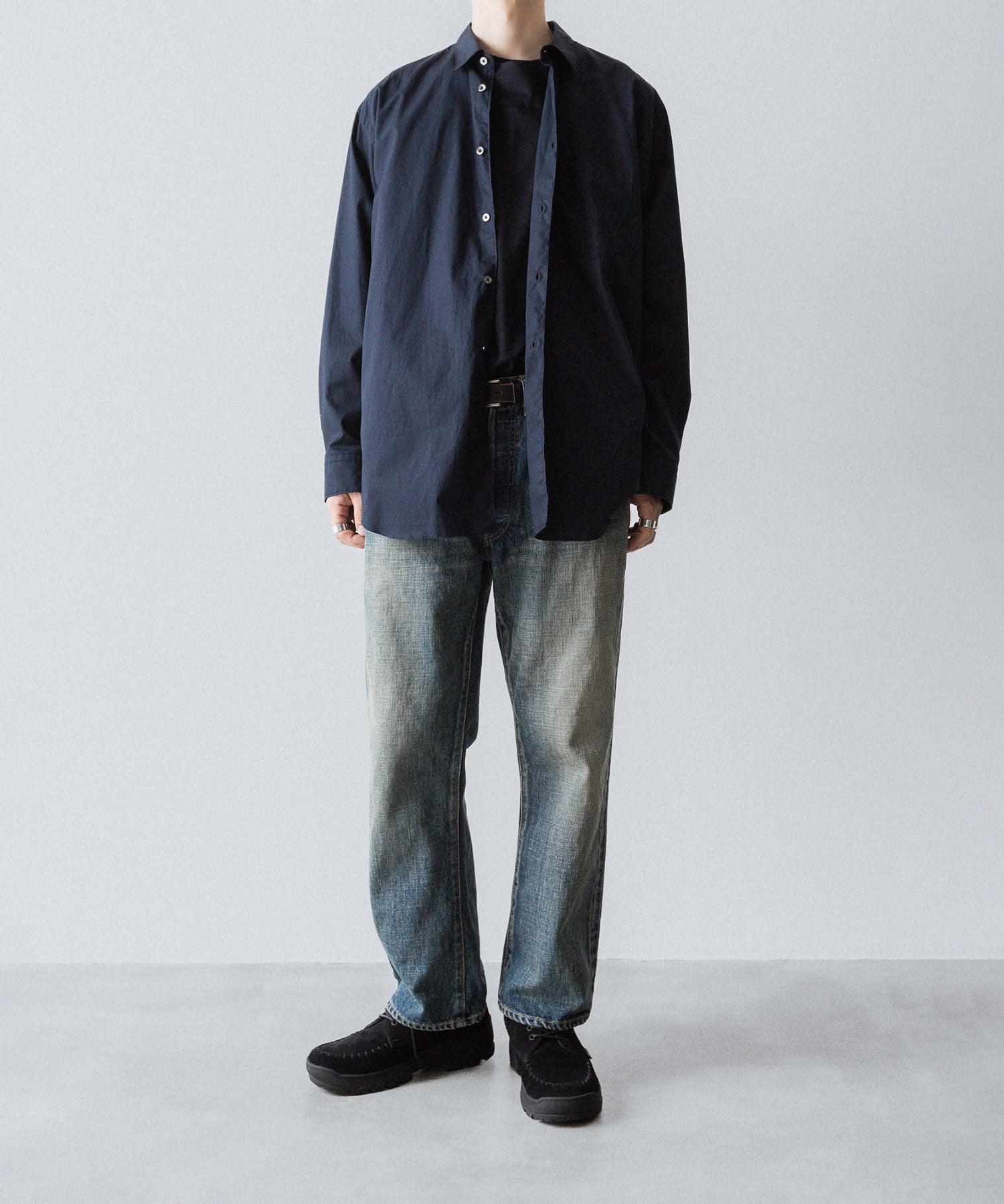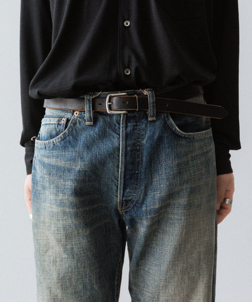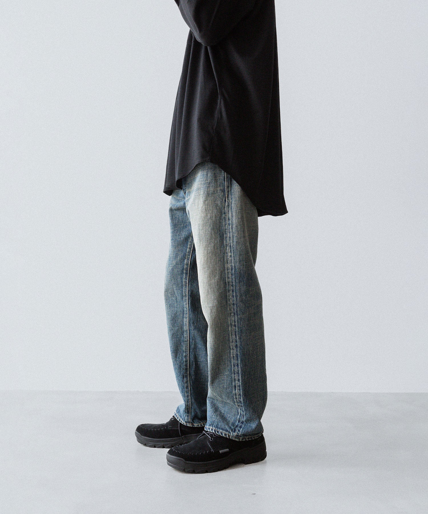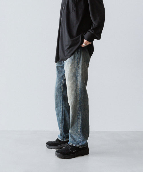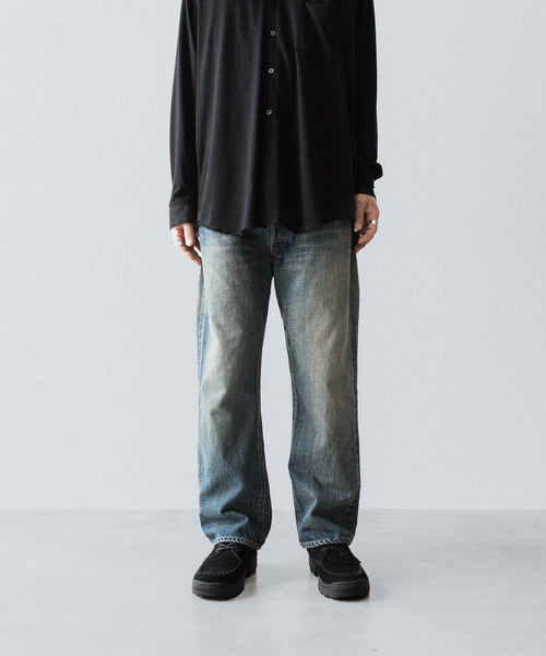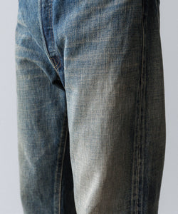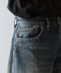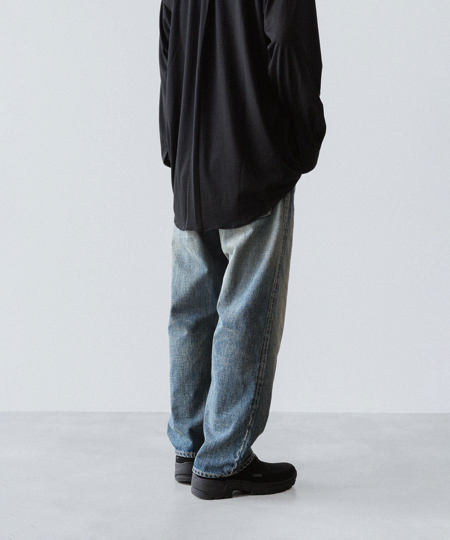 「501の完成形と評価されている」、実際の1947年のXX をモチーフに製作したジーンズ。当時はジーンズがワークウエアからファッションアイテムとして認知されつつあっ たタイミングで、47XXは体型を選ばない洗練されたフォルムのモデルとしてヴィンテージ市場でも特に貴重とされています。 極めて貴重なヴィンテージからフォルムをトレースし、 しっかりと深さのある股上や、ゆるやかにテーパード感のあるストレートシルエットを再現しました。 仕様もヴィンテージにならい、ポケット脇の通所“クインチ”ステッチを⻑くした他、ベルトループも太めの山高仕様に。ピスネームも今回のためにレーヨン製の片面タブを製作しました。前立てには鉄製のオリジナルロゴ入りボタンに特殊メッキ加工を施したものを採用しています。