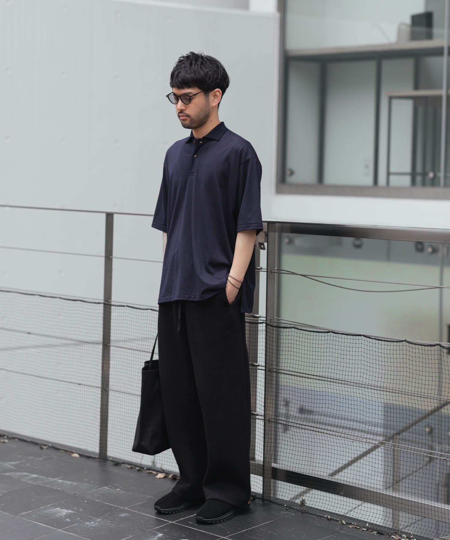 肩幅と身幅をたっぷりと広くゆとりを持たせたデザインで袖もあえて⻑めに設定したリラックス感たっぷりのハイパービッグポロシャツ。オーバーサイズでありながらサイドに深めのスリットを大胆に入れることで動きやすさとスタイリッシュなシルエットの両立を実現しました。 また厳選された上質な生地をふんだんに使用するため肌触りの良さや着心地の快適さはもちろん、それぞれ の生地が持つ独自の質感や特⻑を贅沢に感じられる一 着です。