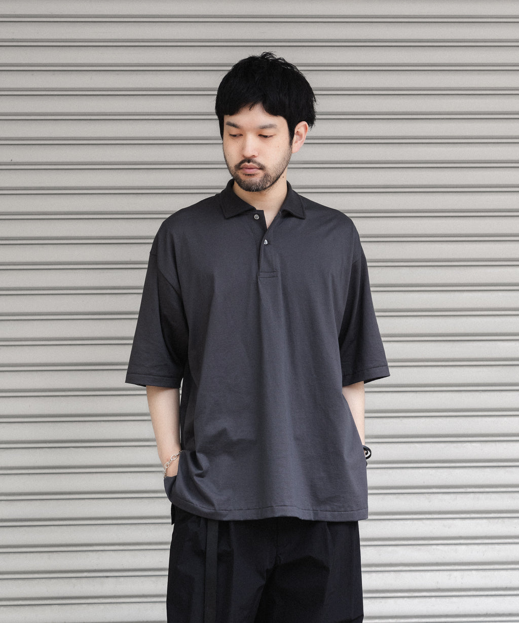 【INTÉRIM】 HYPER BIG HIGH GAUGE SUVIN JERSEY POLO SHIRT - SMOKE BLACK