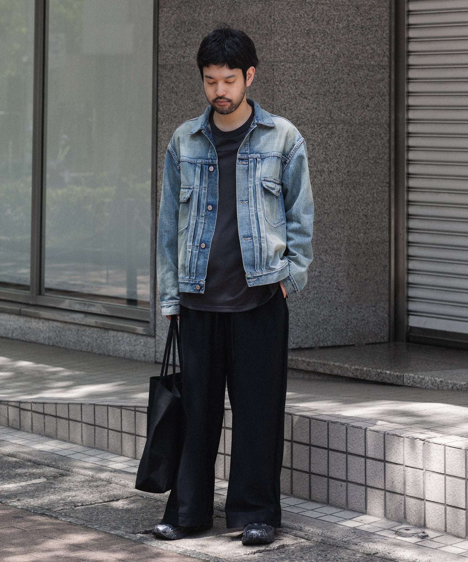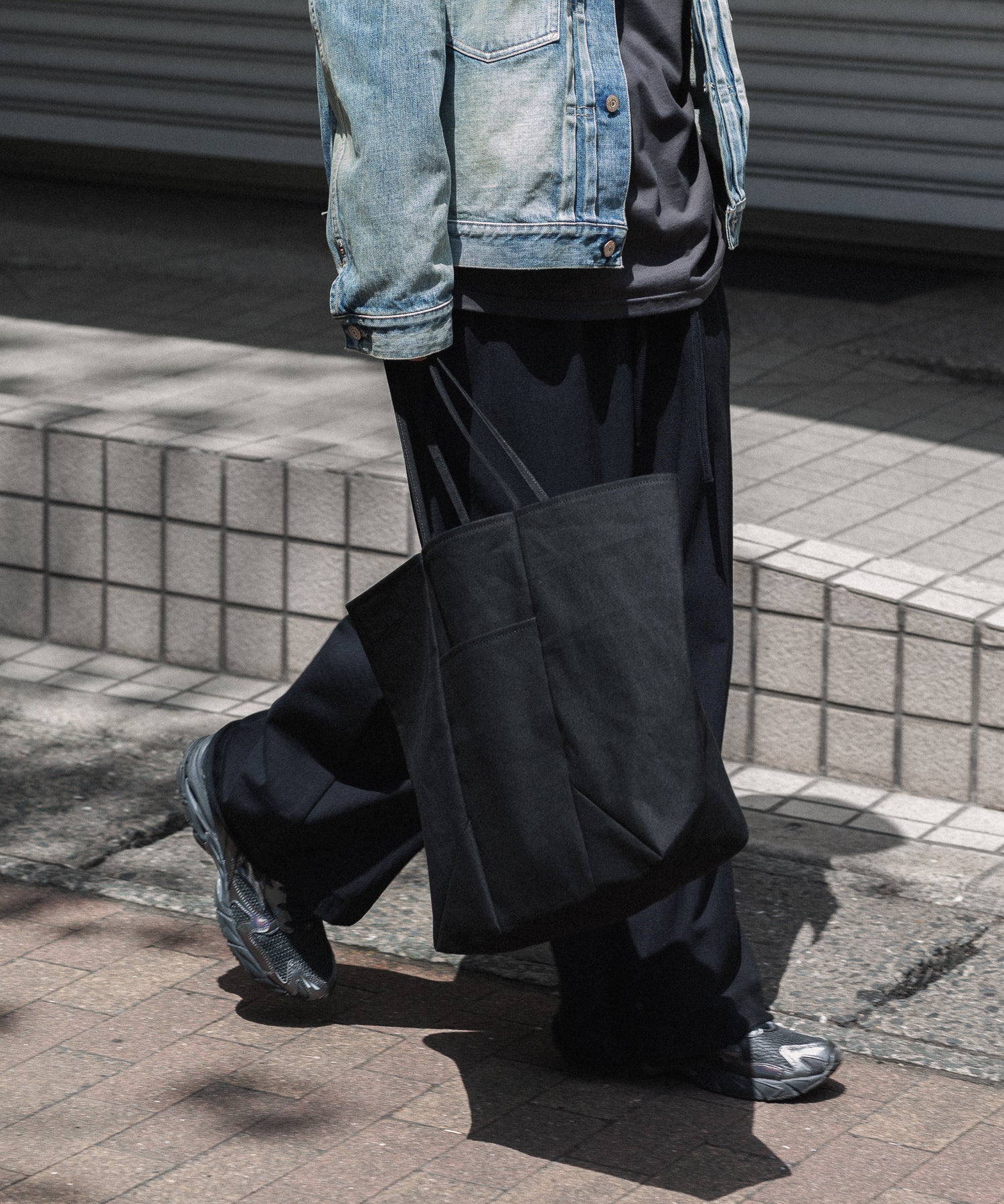 紙袋を縦に3分割して、再接合したような構造のトートバッグ。