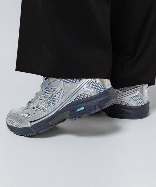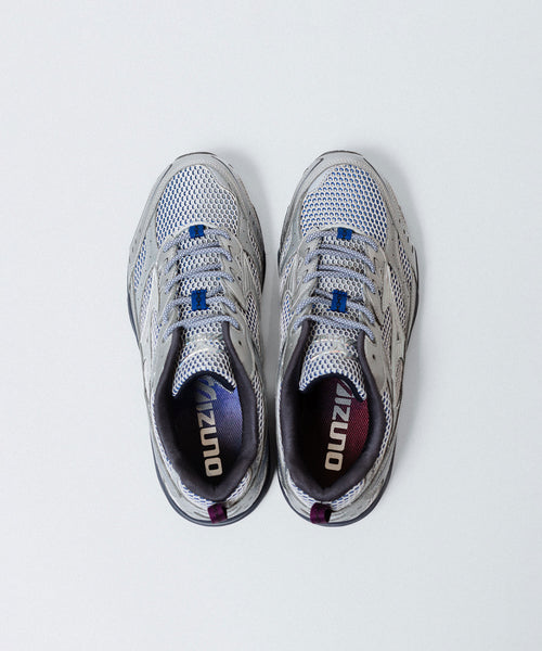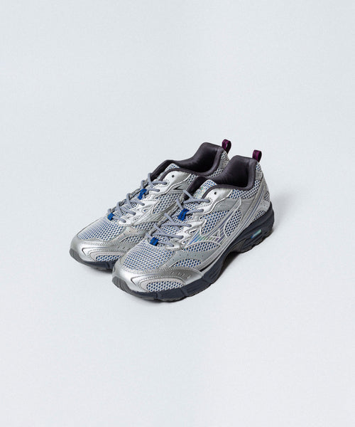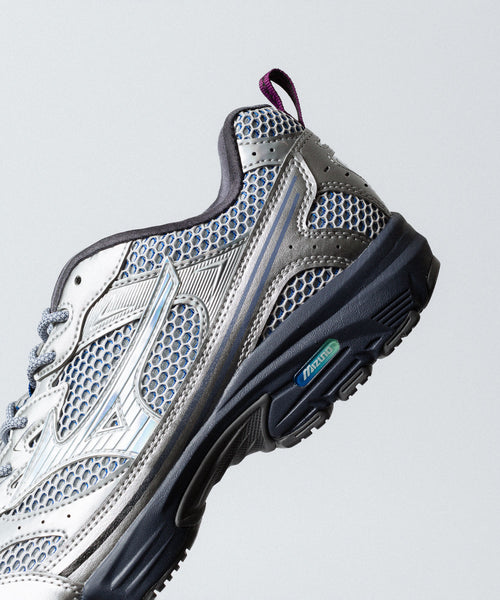 MXR は、ミズノの高い品質を多くの顧客に届け続けているランニングシューズ「MAXIMIZER」をベースとしており、レトロテックな雰囲気と2000年代のランニングの美学が融合したモデルです。