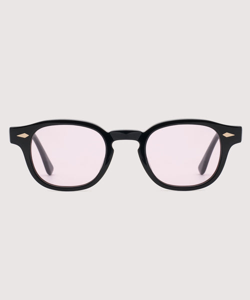 こちらは、グロスブラックのフレームに、UV下にて淡いピンクからダークグレーへカラー変化する調光レンズを採用したモデルです。