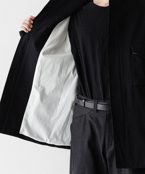 「繊細さと強さ」「伝統性とモダニティ」「無骨さと繊細さ」相対する二つの要素を一つのデザインに落とし込むことで生まれる新しいワークウェアを表現 機能性を重視したポケット、経年変化を想定して作られたシルエットなど、現実的でありながらもオブジェクトとしての美しさを同時に追求していく。