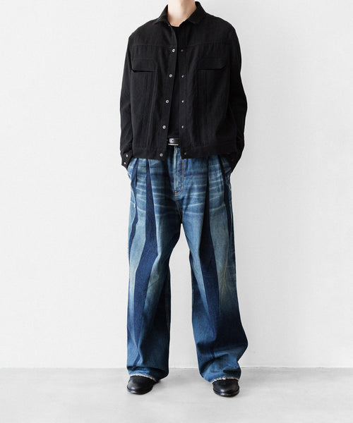 「繊細さと強さ」「伝統性とモダニティ」「無骨さと繊細さ」相対する二つの要素を一つのデザインに落とし込むことで生まれる新しいワークウェアを表現 機能性を重視したポケット、経年変化を想定して作られたシルエットなど、現実的でありながらもオブジェクトとしての美しさを同時に追求していく。