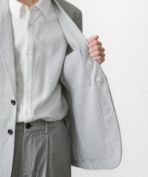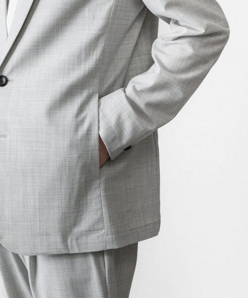ATTACHMENTの定番として高い人気を誇るスラッシュポケット仕様の2ボタンジャケットをベースに構築。