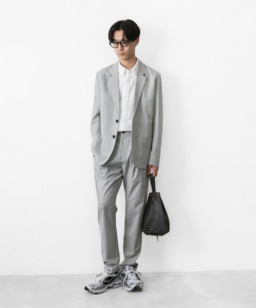上質なメリノウールに、繊細な光沢とハリ感をもたらすトリアセテートブレンドのサイロストレッチ糸を交織したサマーウール・ストレッチトロピカル素材を採用。