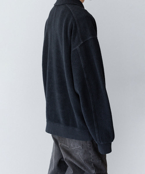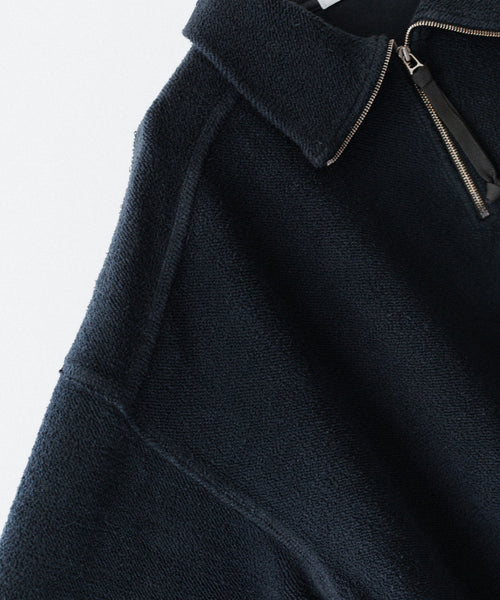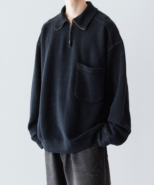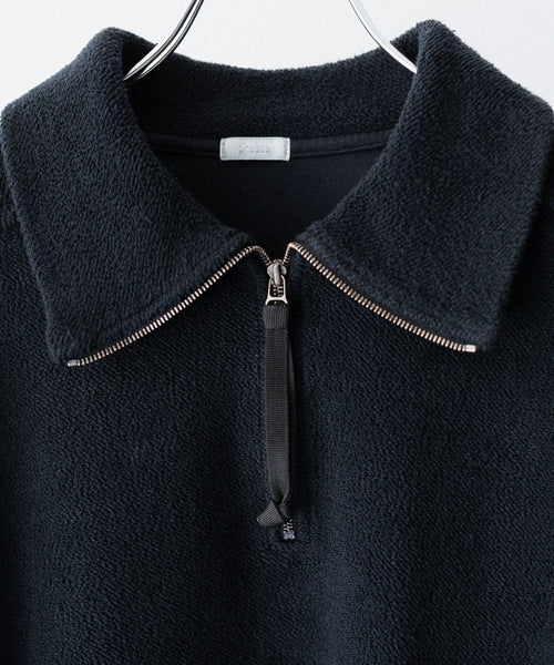 ハーフジップのプルオーバー。ほどよいルーズシルエットに仕上げています。