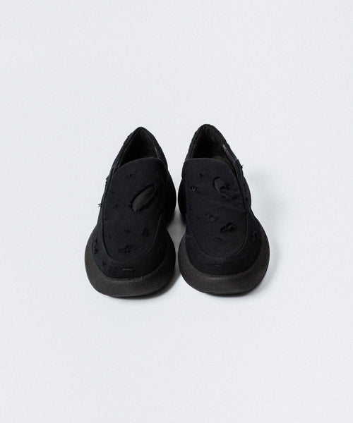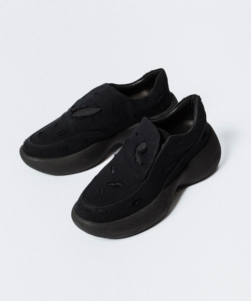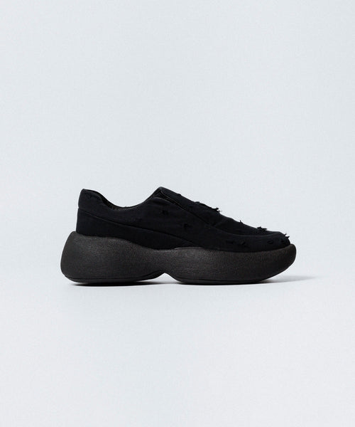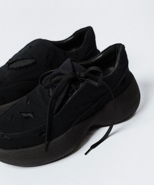 【 VEIN 】COTTON JERSEY x RIPSTOP OVAL SOLE TRAINER - BLACK
