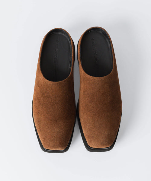 SINE & COSINEの特徴でもある木靴を模したスクエアなトゥが印象的なミュール。