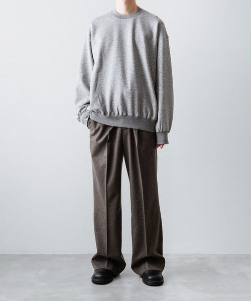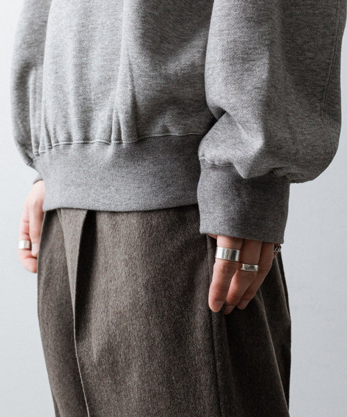 ヤク特有の柔らかさと暖かさを活かした贅沢な質感と洗練された風合いが特徴のスウェット地で製作したクルーネックロングスリーブ。裏面を起毛することで、より一層軽く、ふんわりとした印象に仕上げている。