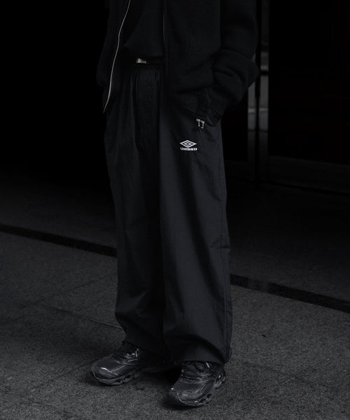 控えめな光沢とコットンのナチュラルな質感が特徴のナイロンコットンダンプ地を使用したトラックパンツ。染色性の高いナイロンならではの発色の良さもポイント。 撥水加工も施されている。