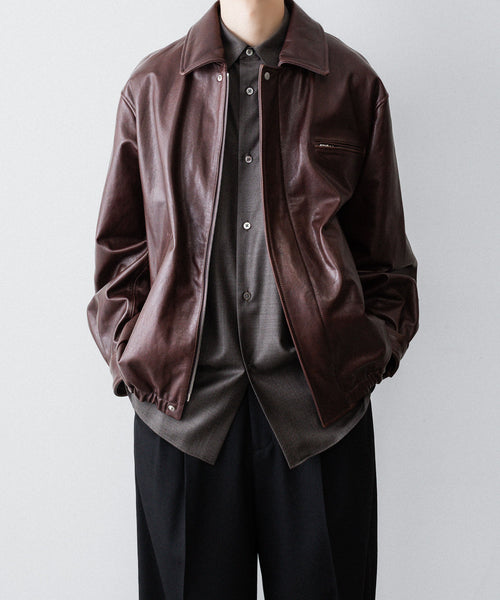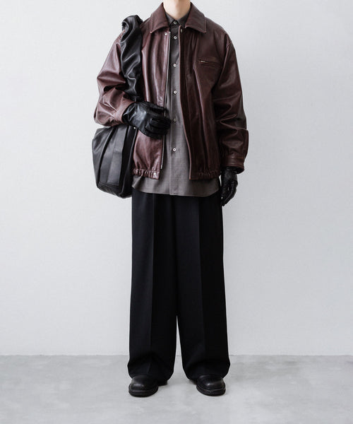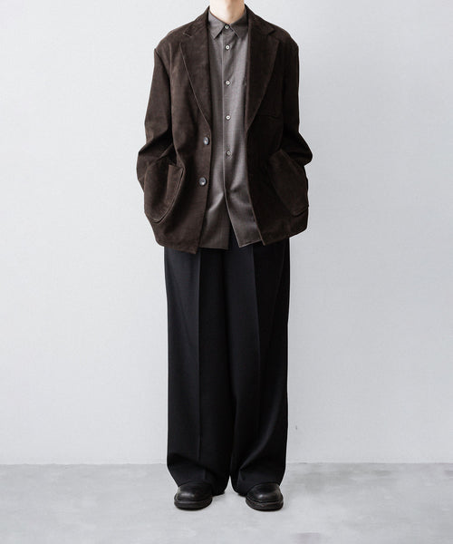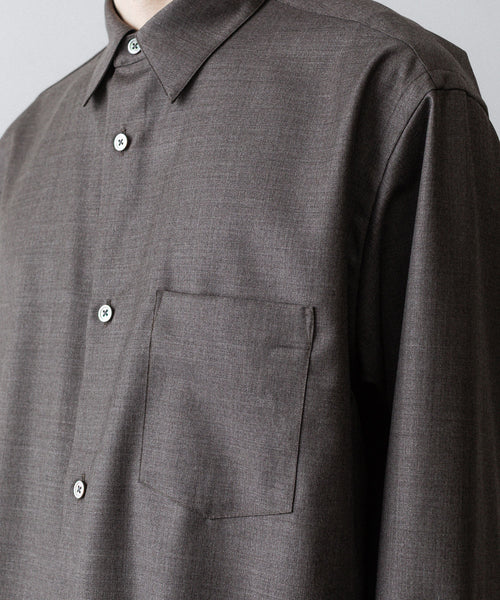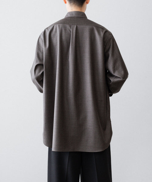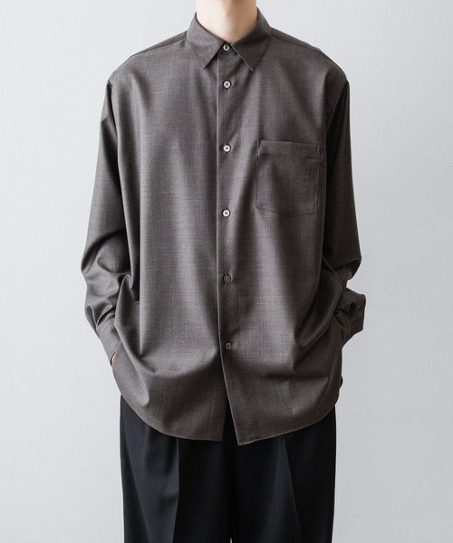 ssstein-シュタインのEXTRA FINE WOOL OVERSIZED REGULAR COLLAR SHIRTのBROWN GREY