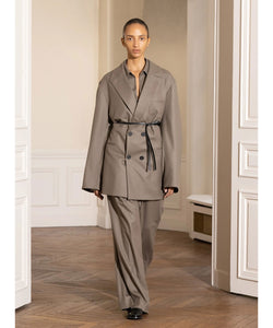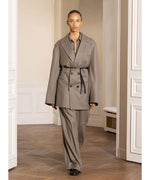 わたり幅から裾幅までスーパーワイドに設定した深めのワンタックトラウザーズ。 腰回りはすっきりとしたフィット感になるよう調整し、ワイドなシルエットながら上品な、エレガントなバランスに仕上がっている。