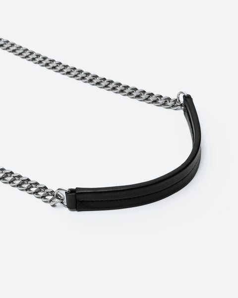 ショルダーストラップには、オリジナルのメッキ加工を施した重厚感のあるチェーンを採用。