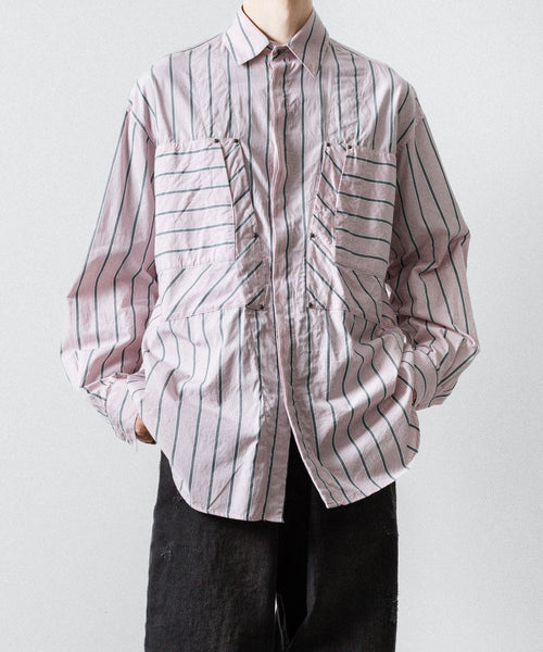 SUBLATIONS-サブレーションズのSTRIPE OVERLAP POCKETS SHIRTのPINK STRIPE