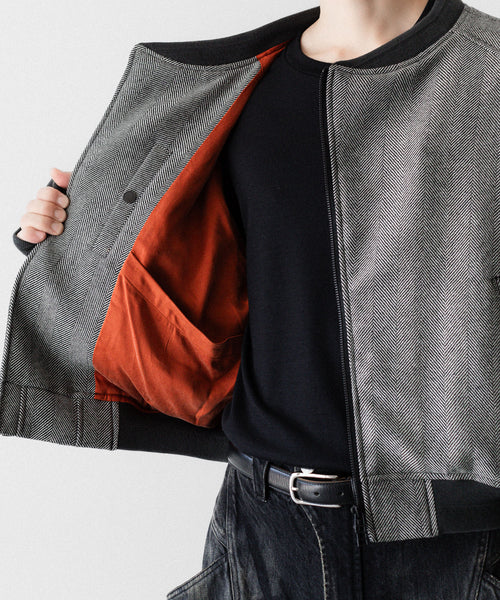 SEC.13で好評を博したADJUSTABLE MA-1を、国産のWOOL100%の太めのヘリンボーンにアップデートしたモデル。