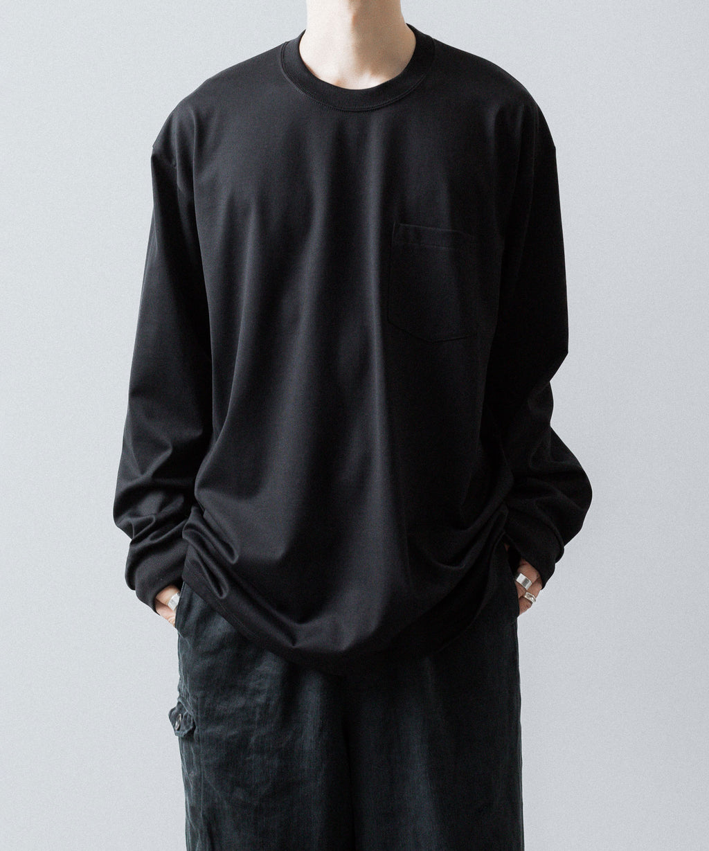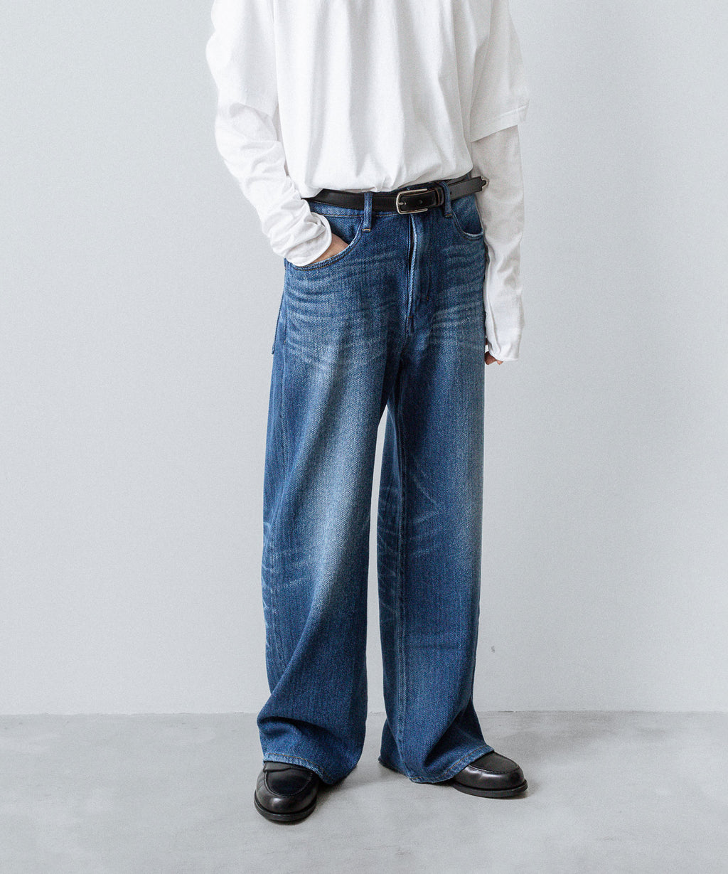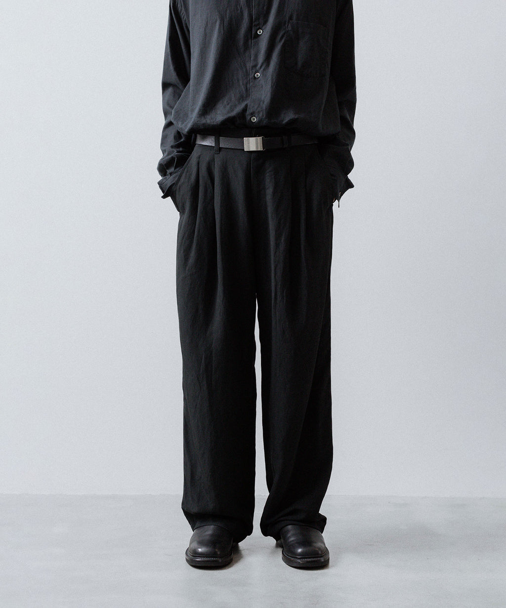 【ssstein】 LONG WIDE TROUSERS (2/60 WOOL GABARDINE) - BLACK