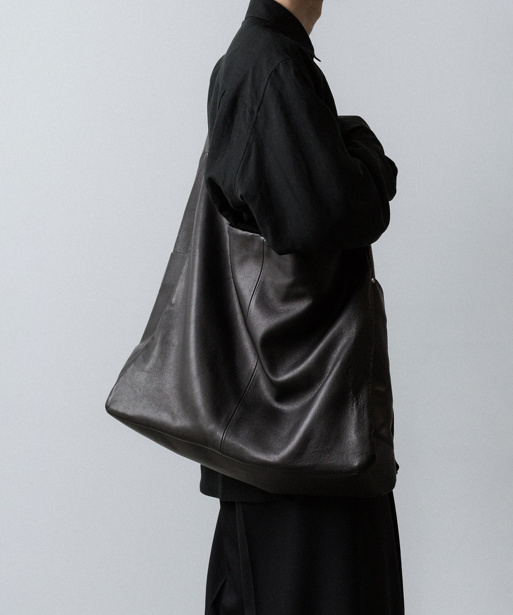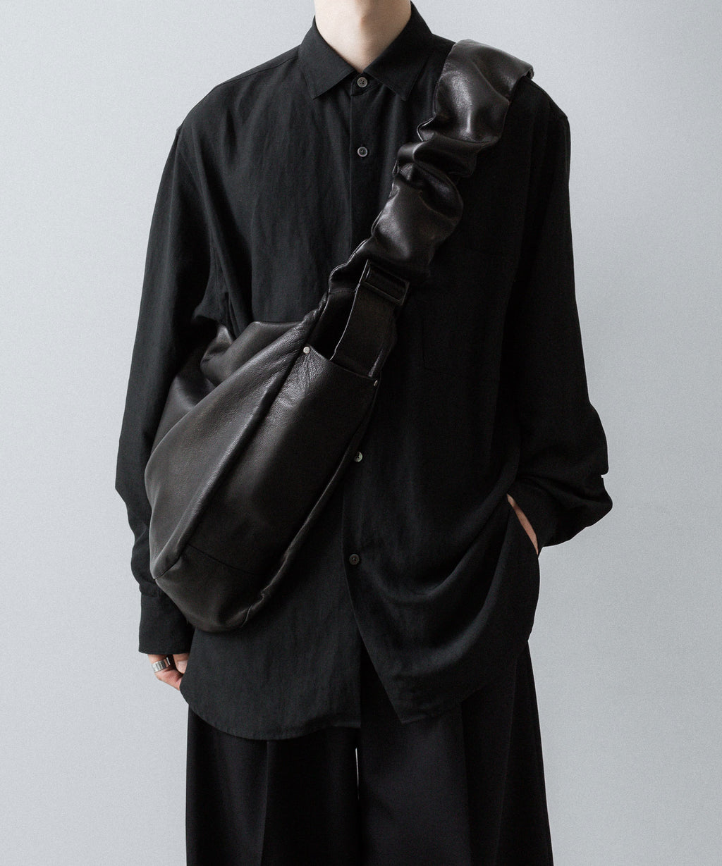 【ssstein】SHIRRING HANDLE LEATHER SHOULDER BAG - BLACK