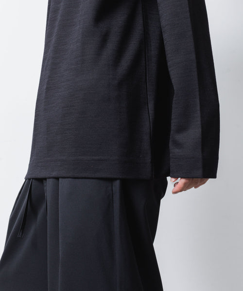 程よいゆとりのあるドルマンスリーブ仕様で、トレンド感のあるオーバーサイズでありながらも、袖口に向けて細くなっておりレイヤードスタイルにも使いやすいシルエットに。