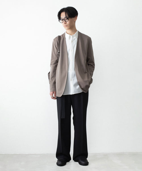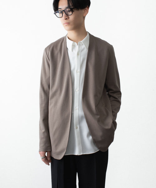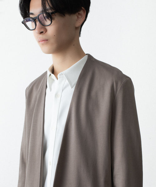 ATTACHMENT-アタッチメントのCOTTON DOUBLE FACE COLLARLESS CARDIGANのKHAKI GRAY