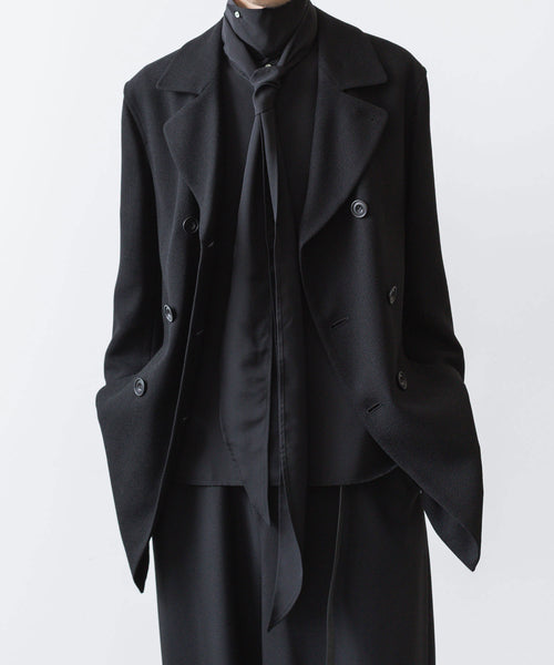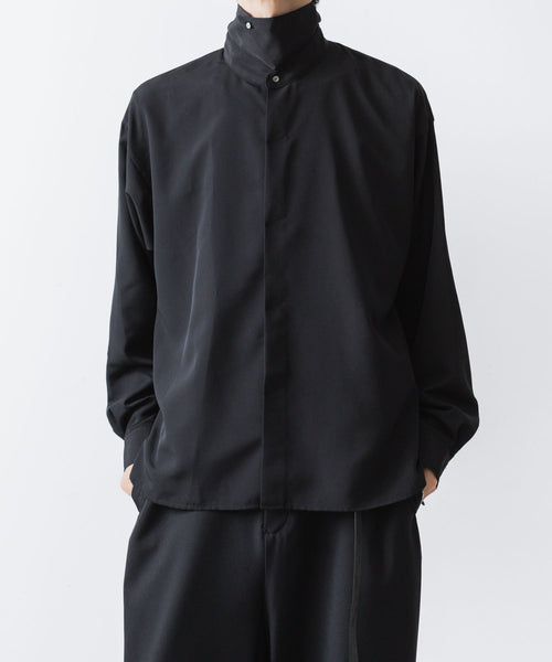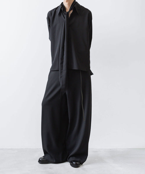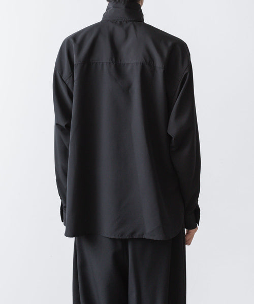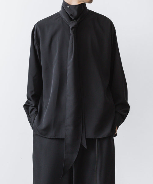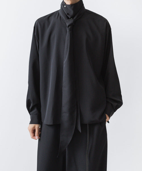 ato-アトウのCREPE DE CHINE SHORT SCARF SHIRTのBLACK